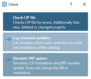 Here, in the example in hand the option Check CIP file is used. Select the tabbed page Status.