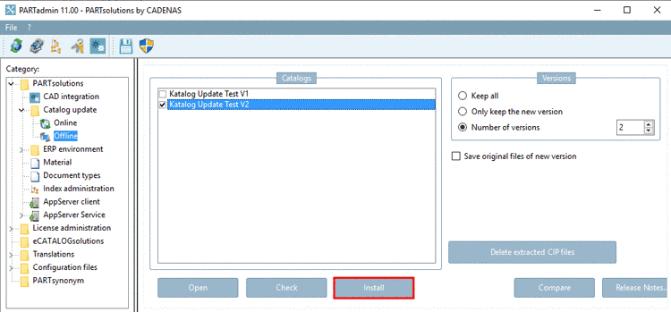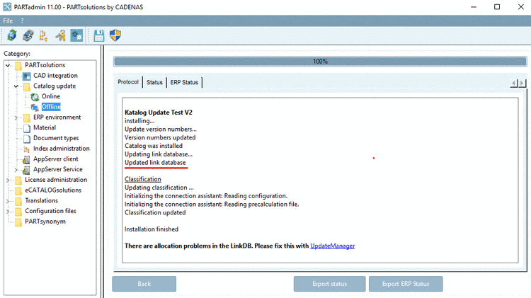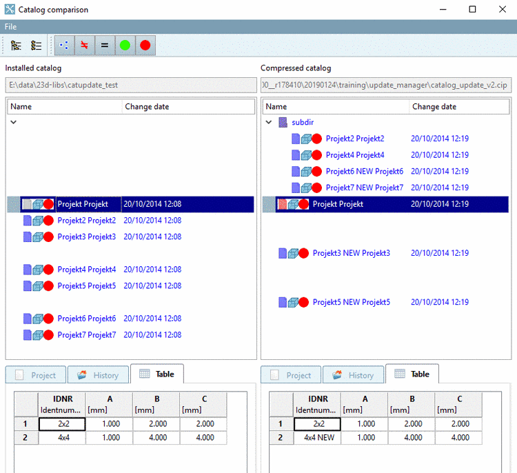 Under PARTadmin -> category Catalog update -> Offline -> Compare you can see a Catalog comparison with directory structure and table. Changes of the directory structure can be seen at once.