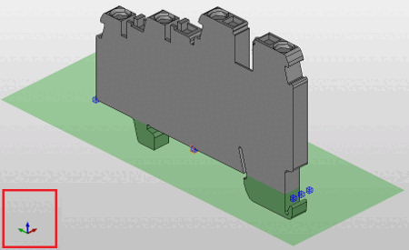 Posizionare il piano sul pavimento (che in seguito sarà la superficie di montaggio in ECAD) in modo che il punto più esterno della parte (di solito diversi) tocchi il piano. La parte non intersecherà quindi il piano e il lato corrispondente del rettangolo di selezione corrisponderà al piano.