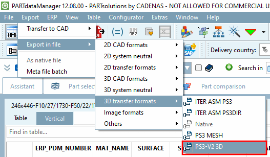 Scarica nella pagina Sistema CAD il file PS3 tramite il menu PARTsolutions ->