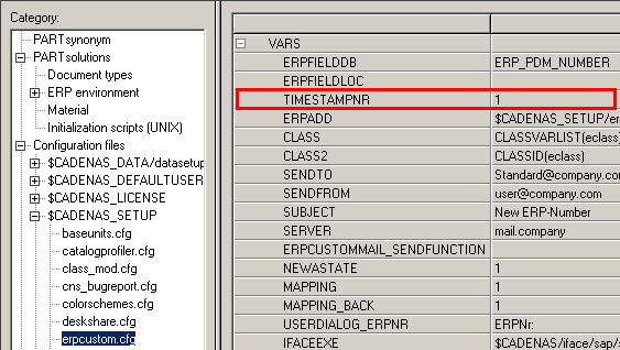 ERP variables: Variables not managed in the characteristic attribute table, but in the link database (only relevant with ERP integration). This is about data coming from connected systems such as ERP/PDM, meaning e.g. ERP number, material, price, storage, release state, etc.