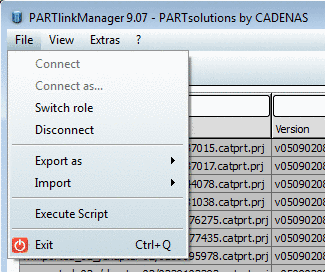 Context menu under Part selection in the directory structure (tabbed pages Catalogs, Classes, Favorites, Opened projects, Document scan) on project level: