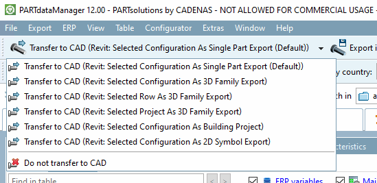 • Trasferimento al CAD ( Revit: configurazione selezionata come famiglia 3D [Revit: Selected Configuration As 3D Family Export] )