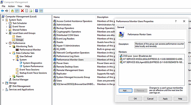 Soluzione: aggiungere l'utente in > Gestione computer > Utenti e gruppi locali > Gruppi > Utenti di Performance Monitor.