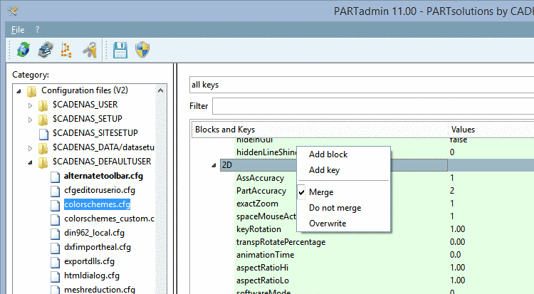 Performing a context menu command in $CADENAS_DEFAULTUSER results in an action in $CADENAS_USER. The action will only take effect when saving and restarting the target application.