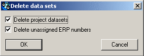 If only Delete project datasets is clicked and a completely filled up dataset is selected, the ERP number remains the same and the other information is deleted. Datasets which only contain an ERP number are not deletable this way.