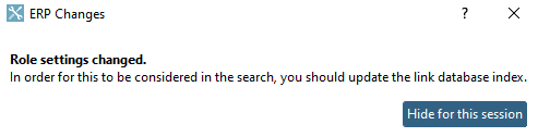-> A message is displayed pointing out that the link database index should be newly created in order to consider the column when searching.