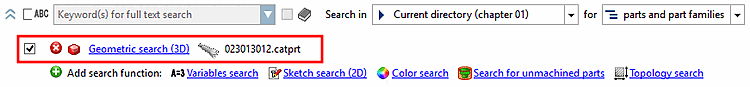La ricerca geometrica (3D) [Geometric search (3D)] è adatta per ricerche indipendenti dal testo, anche come supplemento alla ricerca full text, in particolare per la ricerca nel proprio pool di pezzi, per pezzi non classificati o non registrati nell'ERP/PDM. Grazie alla sua precisione, è possibile trovare il proverbiale ago in un pagliaio.
