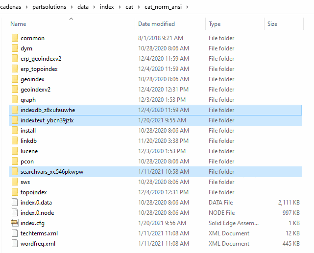 Il vecchio indice e il nuovo indice JavaLucene si trovano nella stessa directory del catalogo degli indici. Le directory del nuovo indice sono riconoscibili dai numeri casuali nel nome della directory.