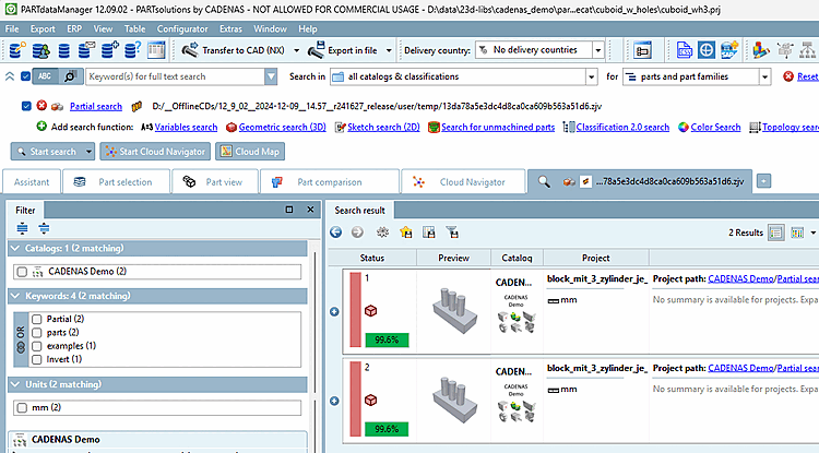 In questo esempio, è stata selezionata l'opzione Cerca parte negativa [Search for negative part]. L'impostazione predefinita per la precisione [Accuracy] è Media [Medium] ; se necessario, modificarla in Esatta [Accurate] o Grossolana [Rough].