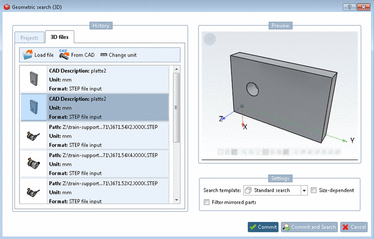 In order for those search templates to be displayed in PARTdataManager on the Geometric Search page (irrelevant of whether default or own templates), activate the checkbox.