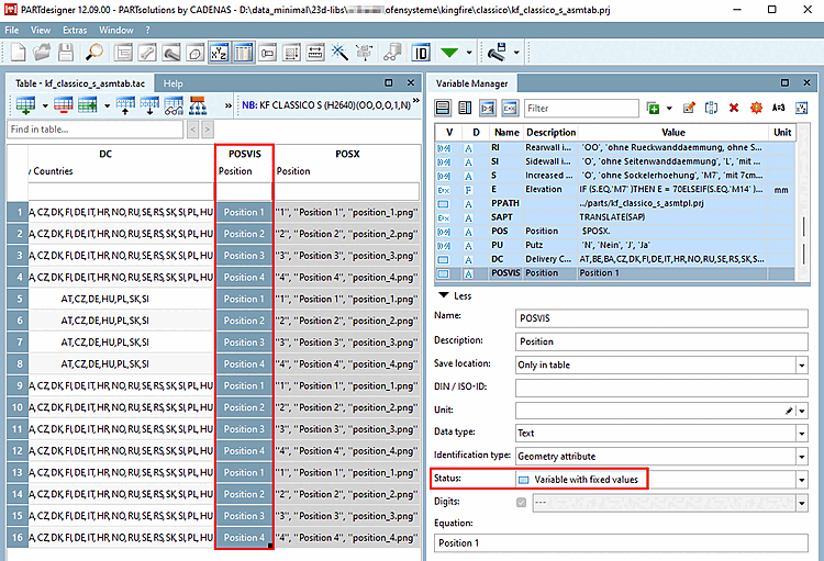Le variabili [VARNAME] e [VARNAME] + VIS sono visibili anche in PARTproject.