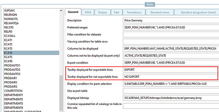 Impostazioni dei ruoli in PARTadmin -> Categoria [Category] -> Ambiente ERP [ERP environment] -> Ruoli [Roles] -> ECAT1-6 -> Tooltip per le righe esportabili/tooltip [Tooltip displayed for exportable lines] per le righe non esportabili [Tooltip displayed for not exportable lines]