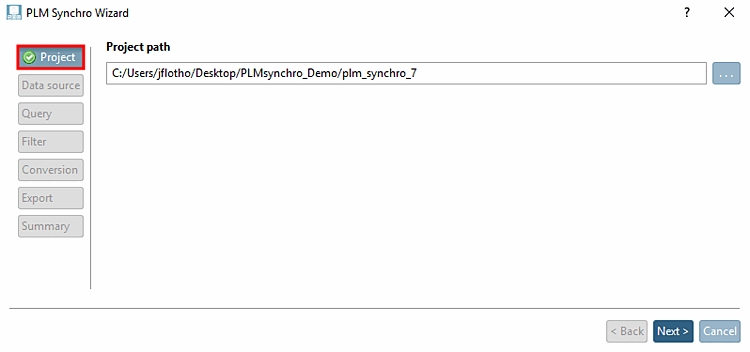 Questa procedura guidata guida l'utente nel processo di configurazione di PLM Synchro.