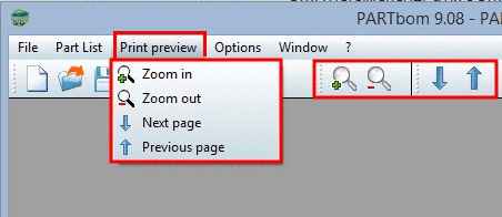 The commands Enlarge and Reduce allow you to change the display size of the Print preview page.