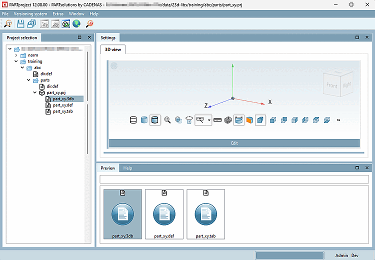 -> In PARTproject, la geometria del dado della calotta è ora trasferita come "part_xy.3db". L'anteprima mostra la rappresentazione corrispondente.