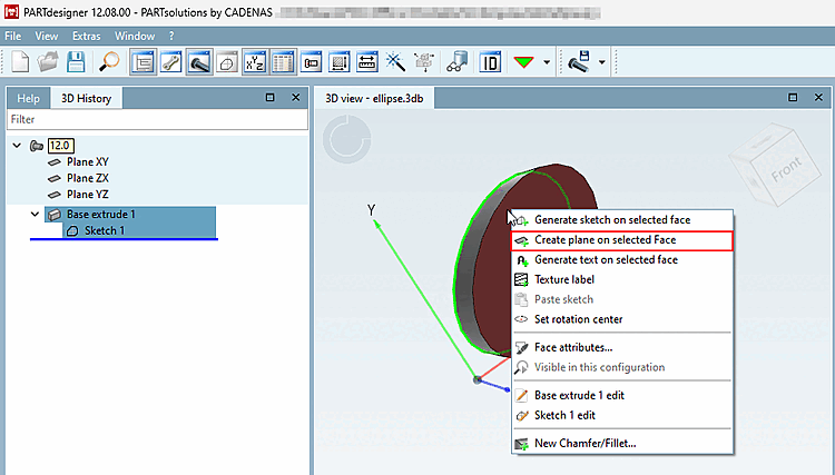 Dopo aver fatto clic su OK, le modifiche vengono applicate e visualizzate nella cronologia 3D [3D History] e nella vista 3D [3D view]. Le modifiche possono essere apportate in qualsiasi momento facendo doppio clic sul layer nella cronologia 3D [3D History].