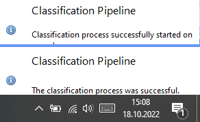 -> Il processo di classificazione viene avviato e due messaggi appaiono uno dopo l'altro nella barra delle applicazioni in basso a destra: In primo luogo, il processo di classificazione è stato avviato con successo sul server e, infine, il processo di classificazione è stato completato con successo.