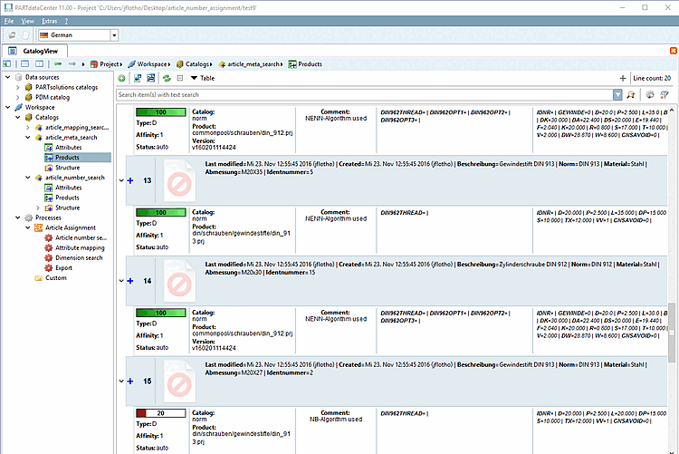 Cancellare le assegnazioni dei prodotti e modificare leggermente il processo attivando l'opzione Consenti varianti [Allow variants]. Anche questo viene assegnato. Sezione 1.1.5.3, “Impostazioni facoltative del nodo "Line Finder NENN ” Per ulteriori informazioni, vedere.
