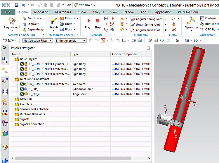 I corpi rigidi e le connessioni vengono creati a livello di assieme dalle istanze solide dei componenti dell'assieme o dai vincoli dell'assieme.