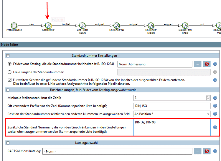 Per le fasi successive, rimuovere il numero standard trovato (ad es. ISO 1234) dal contenuto dei campi selezionati. Questo influisce principalmente sulle fasi di analisi successive nei nodi della pipeline: [Remove found Standard number (e.g. ISO 1234) from selected fields for further steps in pipeline]