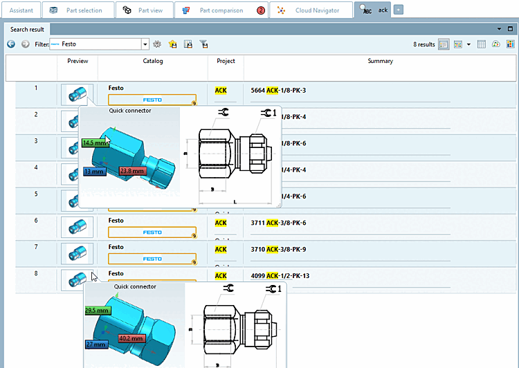 L'altezza della linea e quindi le dimensioni delle immagini di anteprima possono essere impostate con CTRL+ruota del mouse. Ciò è particolarmente utile se le linee contengono forme diverse o parti completamente diverse.