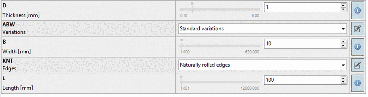 The Dimension attribute is used for half-finished products and profiles that do not have fixed dimensions.
