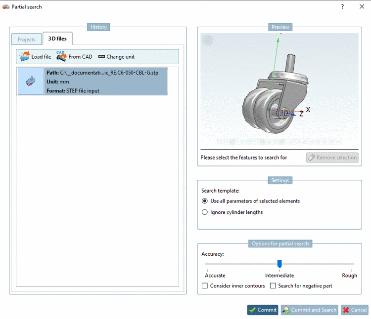 You can use any 3D file as search part: