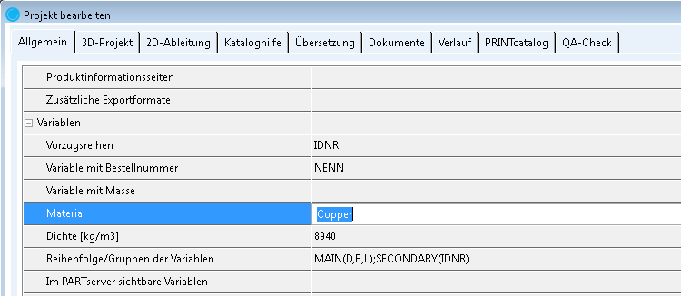 Nella scheda PARTproject Generale [General] -> Variabili [Variables] -> Materiale [Material] è presente un campo per specificare il materiale della parte.