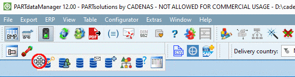 The upper area with menus and toolbars is always visible. Which menus, menu items, buttons and toolbars are actually displayed can be set via configuration files. On this see Section 1.7.8.2, “ Tweak menus, menu items, toolbars, buttons and context menu commands ” in PARTsolutions - Administration Manual.