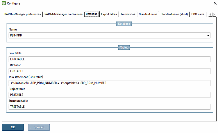 PARTlinkManager -> Menu Extra [Extras] -> Configura ambiente ERP [Configure ERP environment] -> Scheda Database -> Database -> Nome [Name]