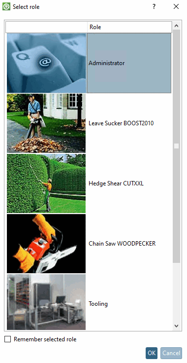 Se si seleziona l'utente "meccanico", sono disponibili i seguenti ruoli: