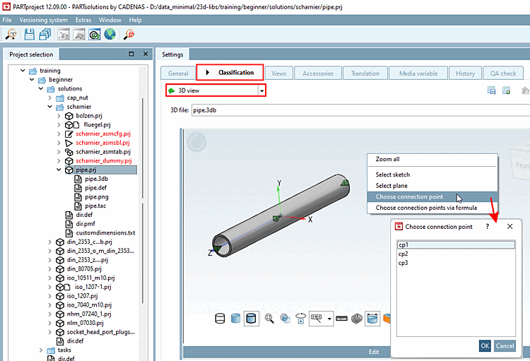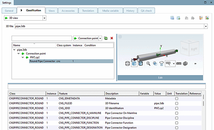 In pratica, un gran numero di classificazioni viene effettuato utilizzando i punti di connessione (ad esempio, per le connessioni dei tubi). Sezione 5.12.8, “ Classificare le parti standard per il dialogo di posizionamento ” Vedi anche .