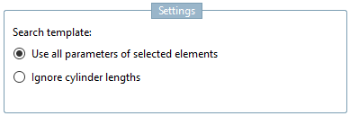 Ignore cylinder lengths:When looking for a fitting counterpart for a hole or a pin, it may be advantageous not to include the length attribute for the search. In such a case use the search template Ignore cylinder lengths.