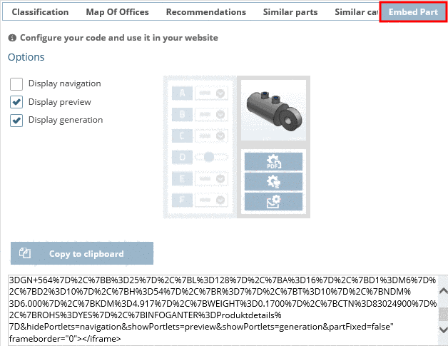 Generated parts available for download. See Section 5.12, “How can I import the selected CAD model into the CAD system?”. |