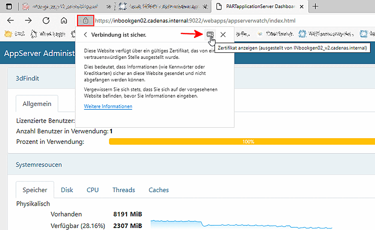 https://servername.cadenas.internal:9022/webapps/appserverwatch/index.html