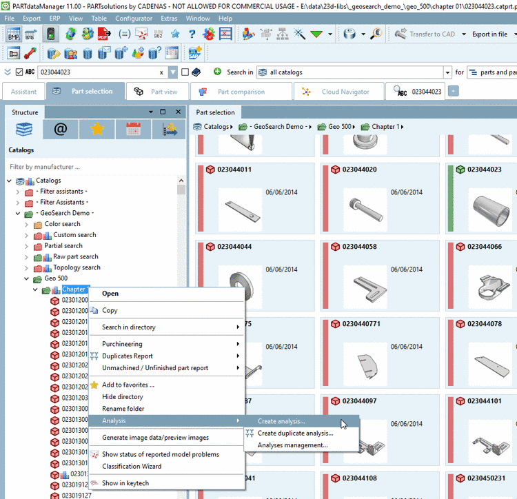 comparison parts show the geometrical similarity.For a detailed analysis you can optionally load search and comparison part into the Part comparison as usual.