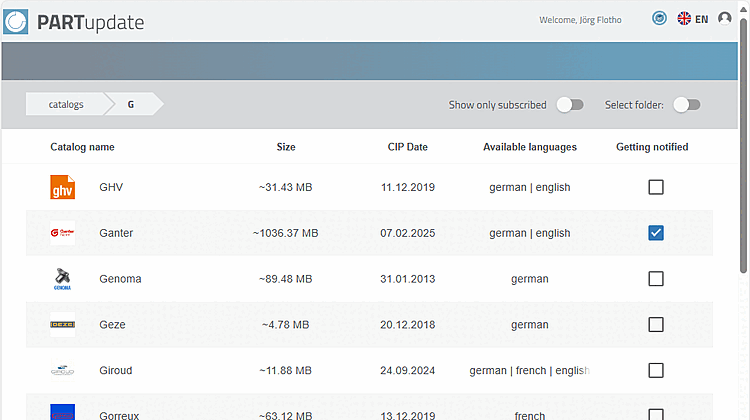 È possibile utilizzare PARTupdate per essere avvisati degli aggiornamenti dei cataloghi e delle classificazioni.