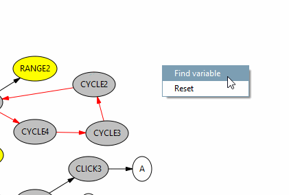 Fare clic con il tasto destro del mouse su un punto qualsiasi per aprire un menu contestuale, fare clic su Trova variabile [Find variable] e selezionare una variabile nella finestra di dialogo. Non appena si fa clic su OK, la vista si concentra sulla variabile cercata.