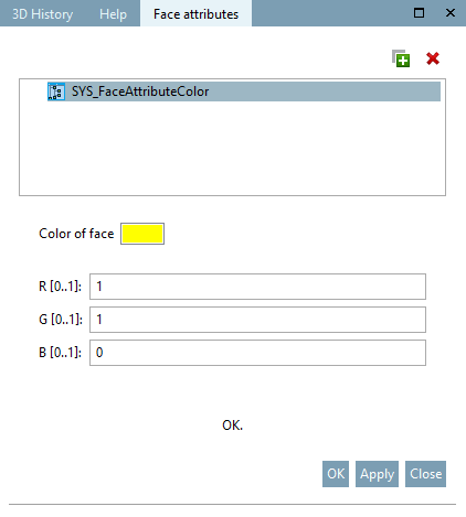 -> Si apre la finestra di dialogo Attributi area [Face attributes]. (In questo esempio è stato selezionato l'attributo "Colore").