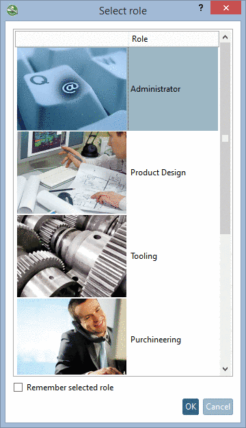 [11] How to set up image and description text of each single role can be found under Section 4.12.2.1.1, “ Dialog box for role selection - plinkgroups.cfg -> Block [Role name] -> Keys "DESC" and "IMAGE" ” in PARTsolutions - Administration Manual.