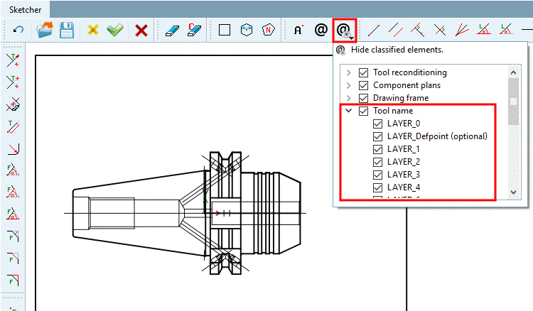 Icon Display text or tooltip Action name (key name) in menuvisibility_PARTdataManager.cfgOccurrence in menu and toolbar