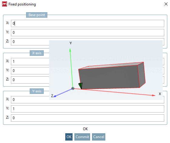 La finestra di dialogo dell'asse X consente di ruotare il sistema di coordinate del componente rispetto al sistema di coordinate di base.