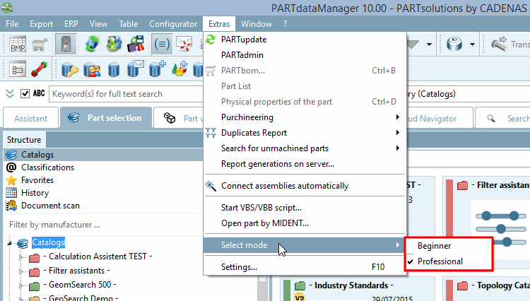 $CADENAS_USER/partsolu.cfg. Creare due file di configurazione descritti in precedenza. Copiare Basta scaricare il contenuto dimenustructure_PARTdataManager.cfgemenuvisibility_PARTdataManager.cfgper un rapido avvio.