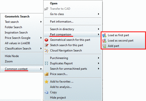 You can find detailed information on the part comparison under Section 3.1.6.10, “ Part comparison ”.
