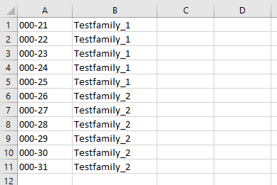 A tal fine si utilizza un file CSV con il numero d'ordine e il nome della famiglia Revit.