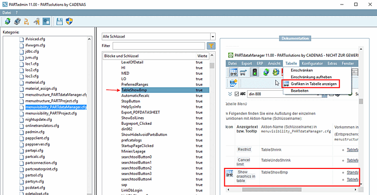 Tutte le impostazioni vengono effettuate con i file di configurazione standard sotto la categoria PARTadmin -> File di configurazione [Configuration files] -> CADENAS_SETUP.