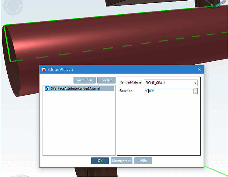 Se ora si marca il cilindro orizzontale nel PARTdesigner e si posiziona nuovamente la stessa texture su di esso, ma ruotata di 90°, l'aspetto è migliore.