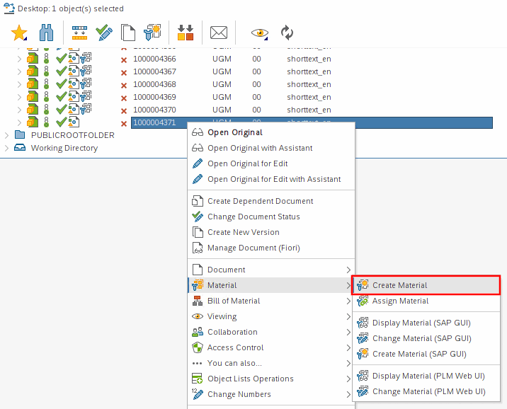-> I documenti esistenti (PLMTABLE2) sono collegati al materiale in SAP.