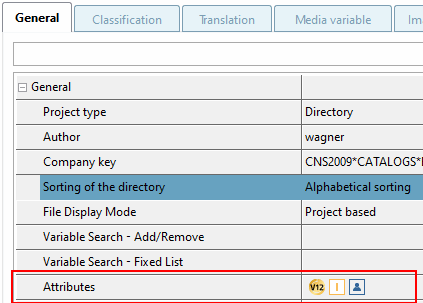 Le icone del catalogo (sigilli, attributi) sono visualizzate in PARTproject in Impostazioni [Settings] > scheda Generale [General] > Generale [General] > Attributi [Attributes].